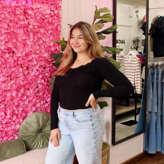 SOLD OUTRomina Lace Trim Long Sleeve Top