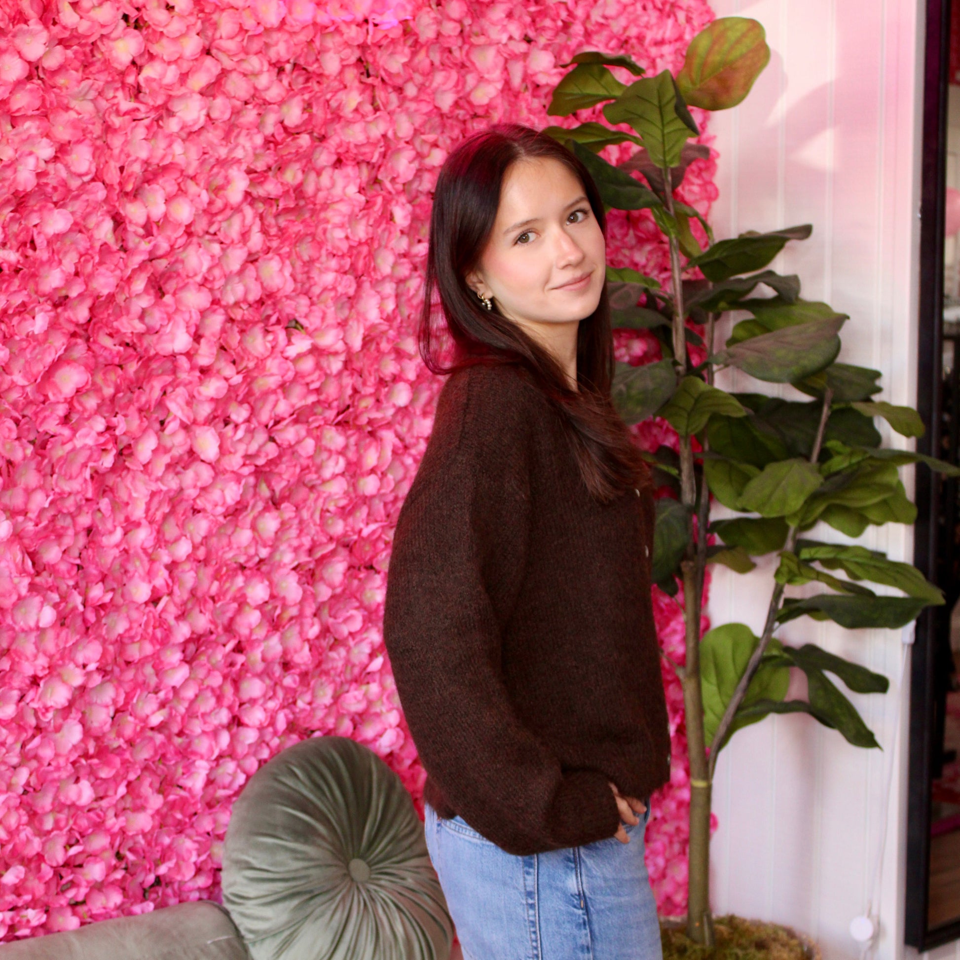 The Isabella Knit Cardigan combines timeless elegance with everyday comfort. Crafted from soft, luxurious knit fabric, this chocolate-hued piece features a charming round neckline that flatters any face shape. The gentle drape and refined construction make it an effortless addition to your wardrobe—perfect for layering or wearing solo. Whether you're dressing up for the office or keeping it casual, this versatile sweater delivers sophisticated style with a touch of understated charm.