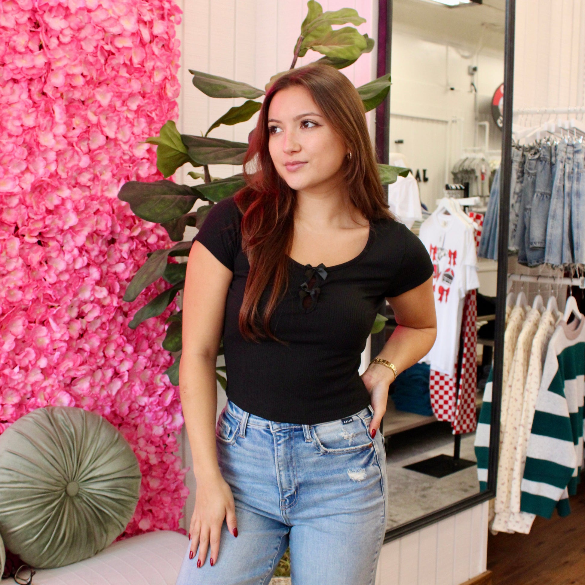 The Lennox Bow Keyhole Top features a sophisticated design with a signature bow accent and a subtle keyhole detail, creating a refined focal point. Crafted from smooth, high-quality fabric, it offers a comfortable fit that effortlessly balances elegance and everyday wearability. Perfect for professional settings or stylish casual looks, this top delivers expert tailoring and timeless appeal.